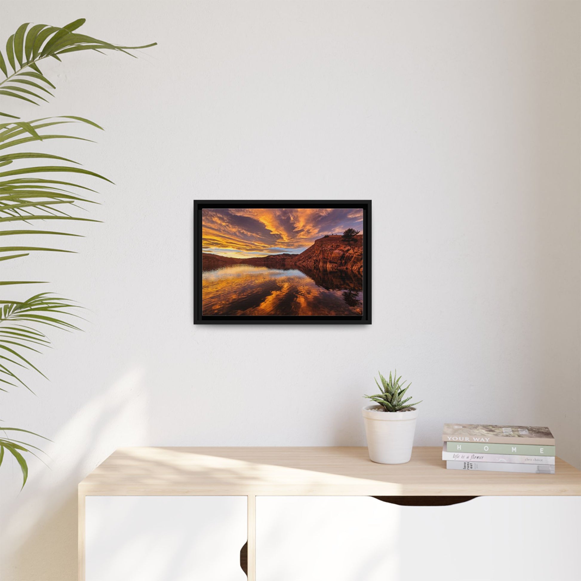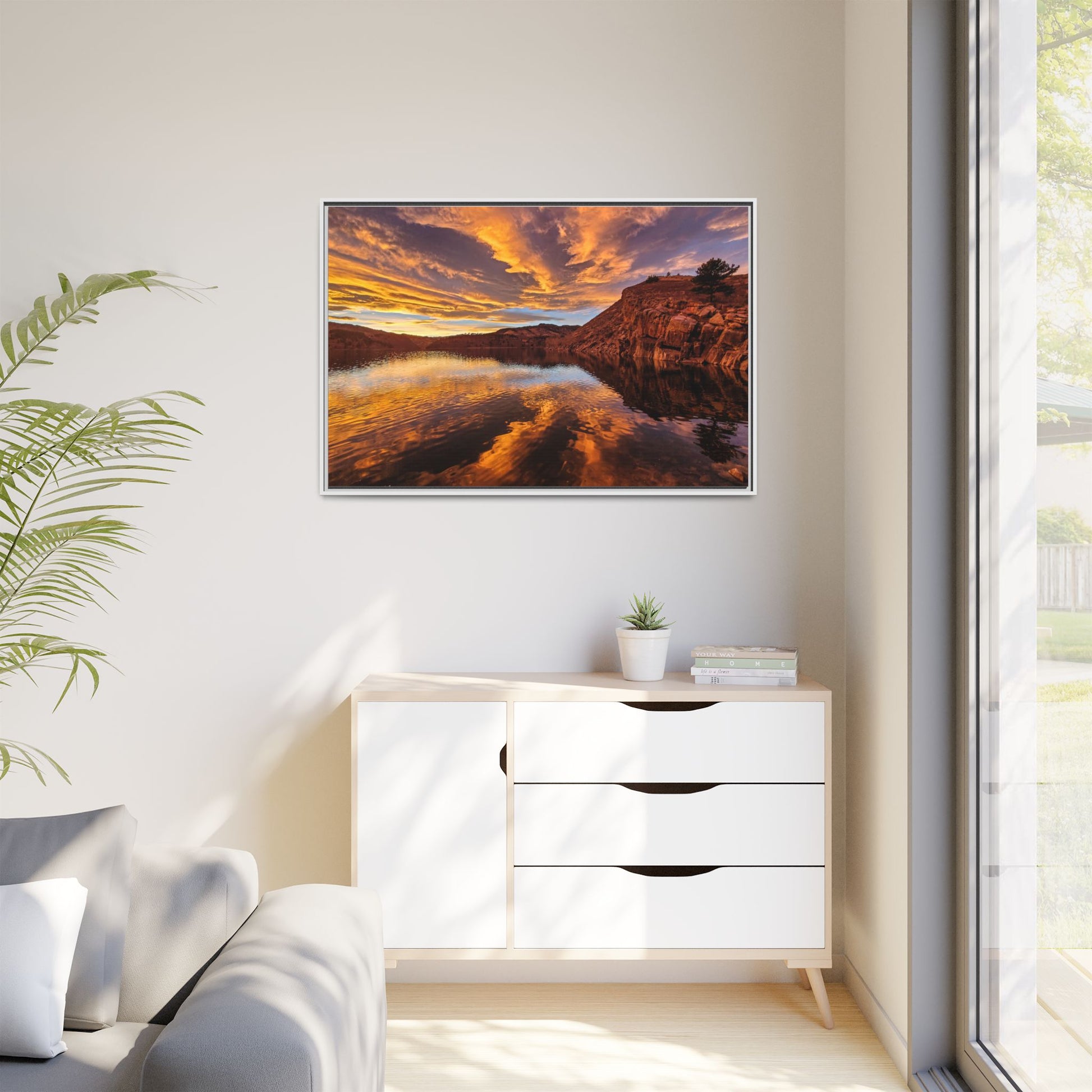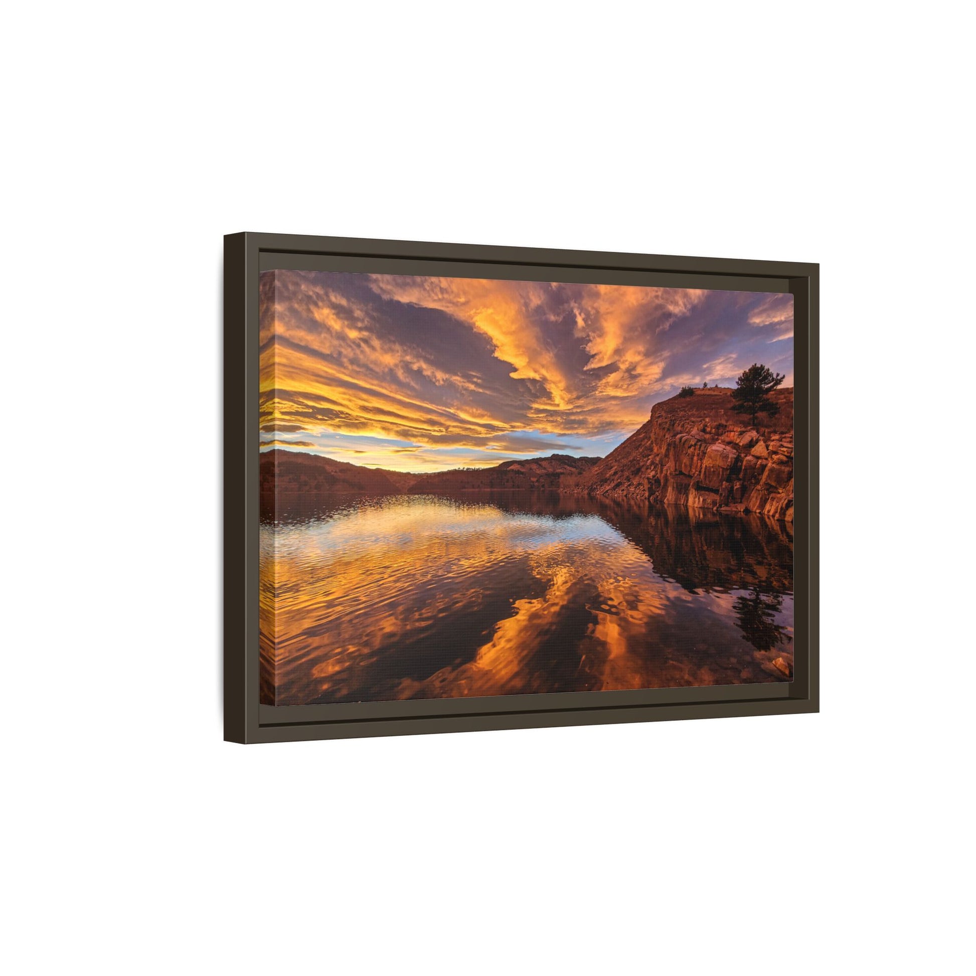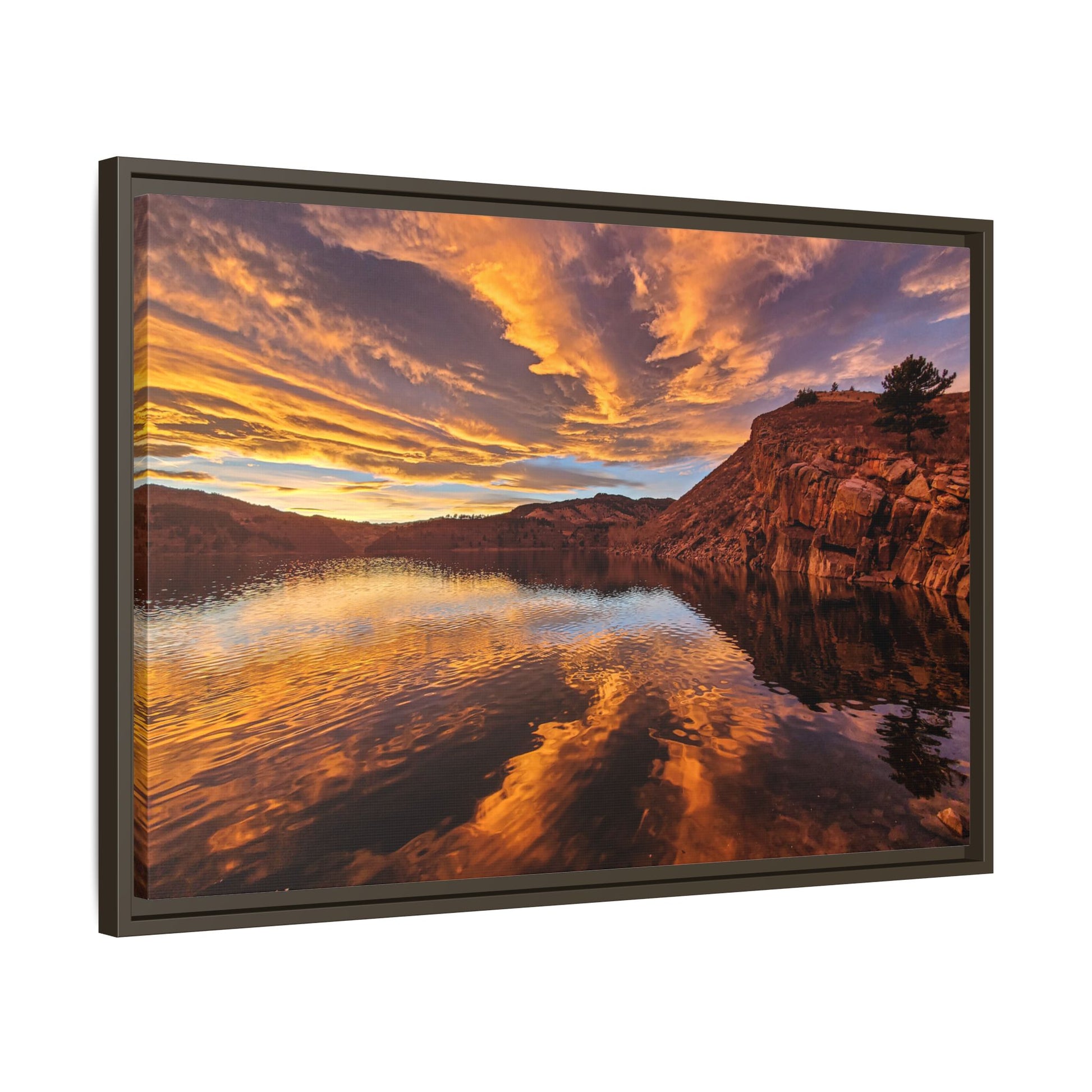 Framed Canvas Print - Colorful Sunset Reflection at Horsetooth Reservoir
