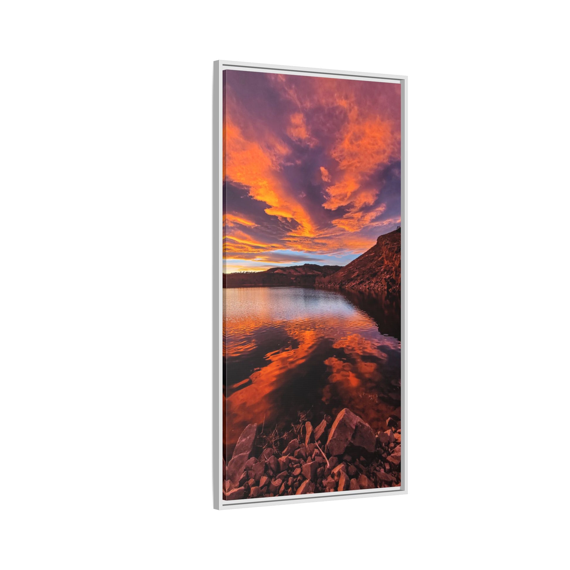 Framed Canvas Print - Colorful Sunset Reflection at Horsetooth Reservoir - Tall
