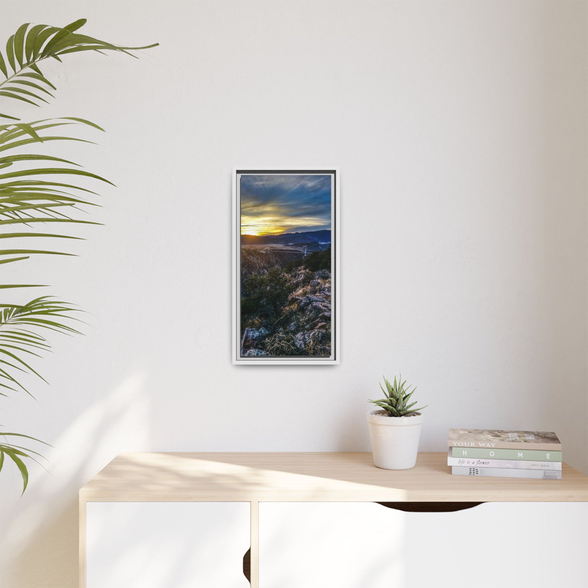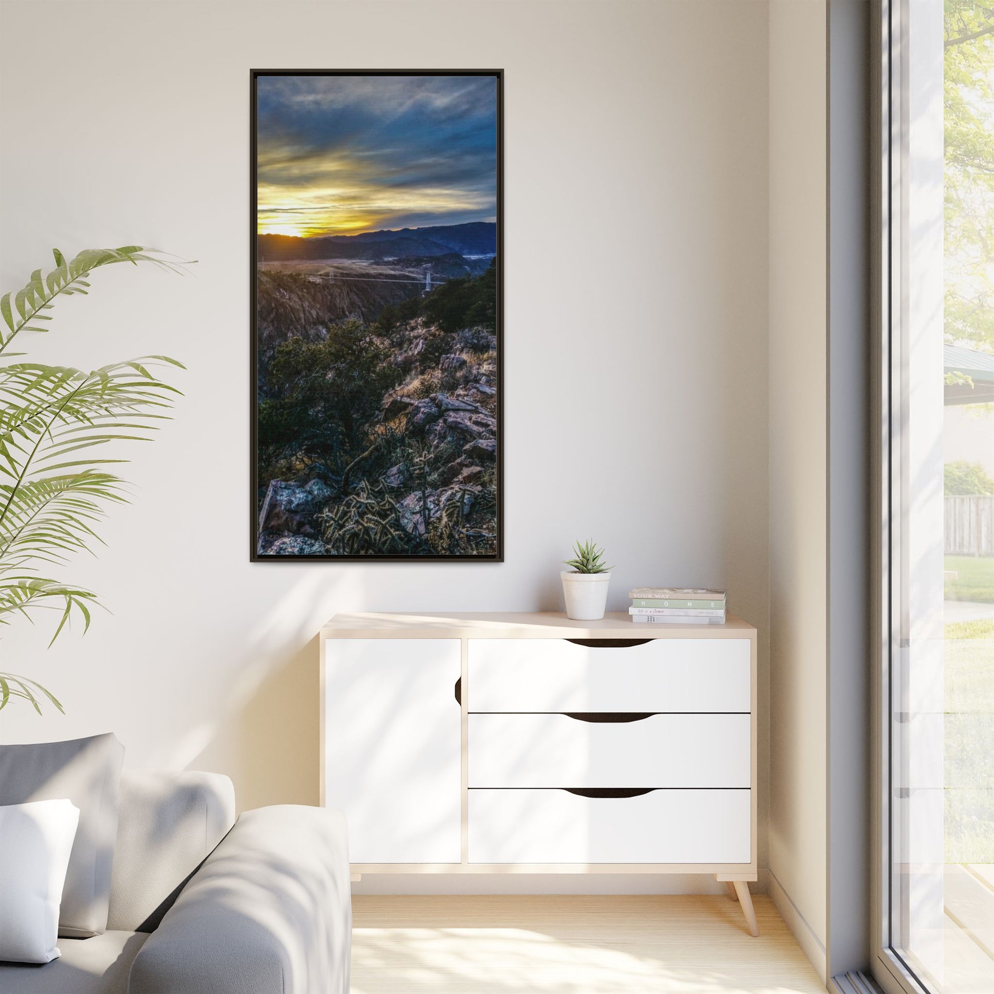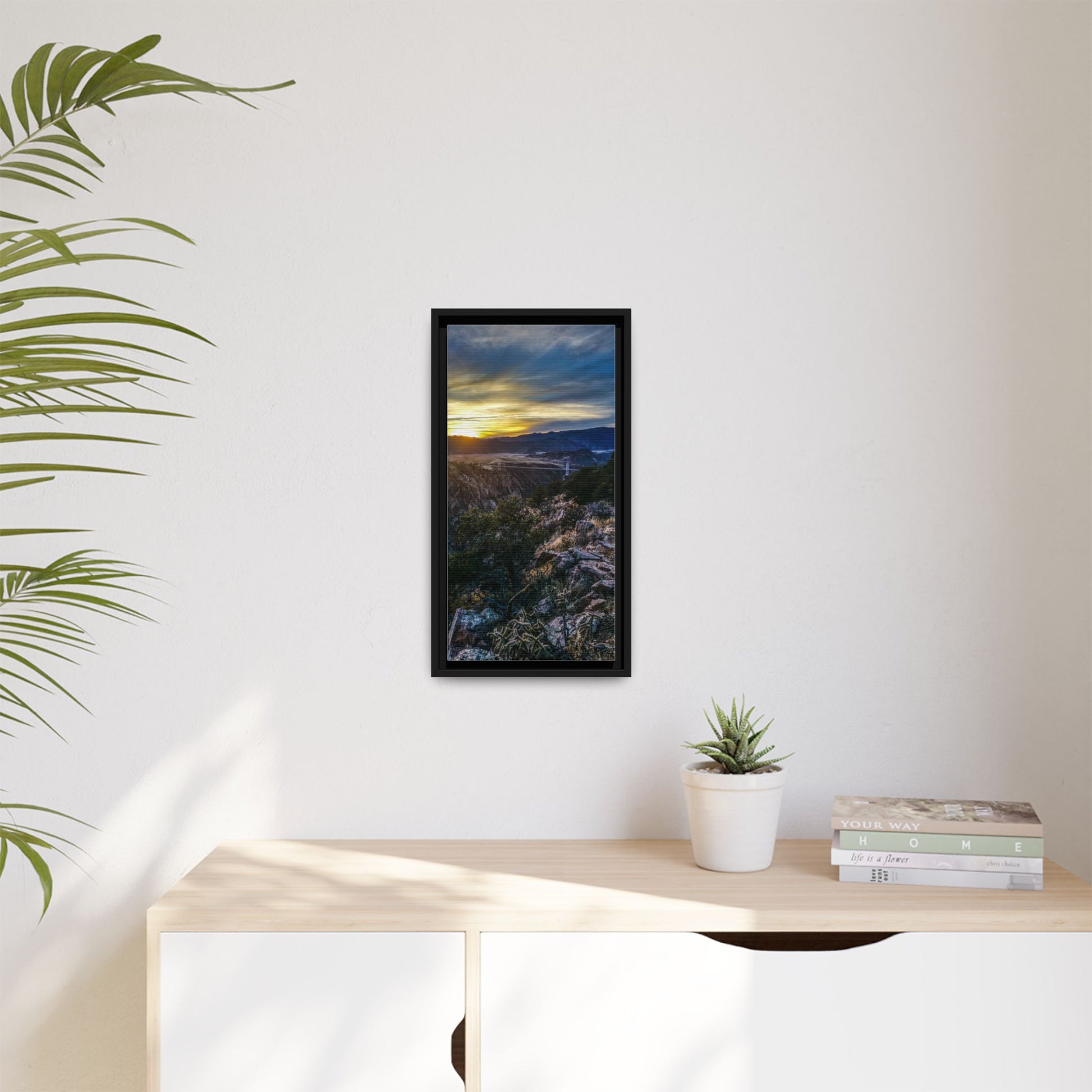 Experience the serene atmosphere of a sunset at the Royal Gorge Bridge in Canon City, Colorado with this breathtaking framed canvas print. Perfect for nature lovers and travel enthusiasts, this piece brings a touch of beauty and tranquility to any room. Ideal for gifting during holidays, birthdays, or as a housewarming present.