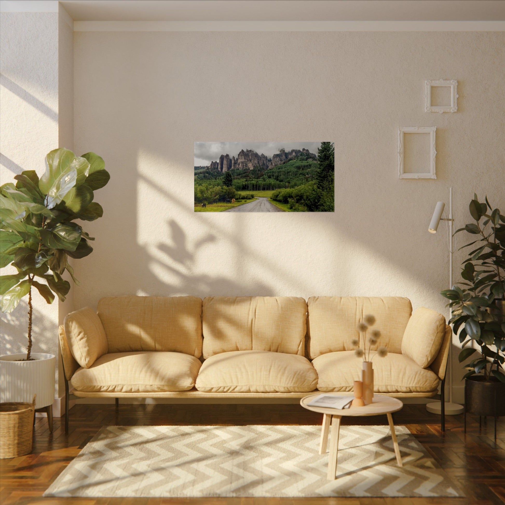 Elevate your home decor with this Framed Canvas Wall Art of the majestic rock formations of Cimarron, Colorado. Perfect for nature lovers and those who appreciate striking landscapes, this piece will bring a sense of tranquility and beauty to any room. Ideal for gifting on birthdays, housewarmings, and nature-themed celebrations.