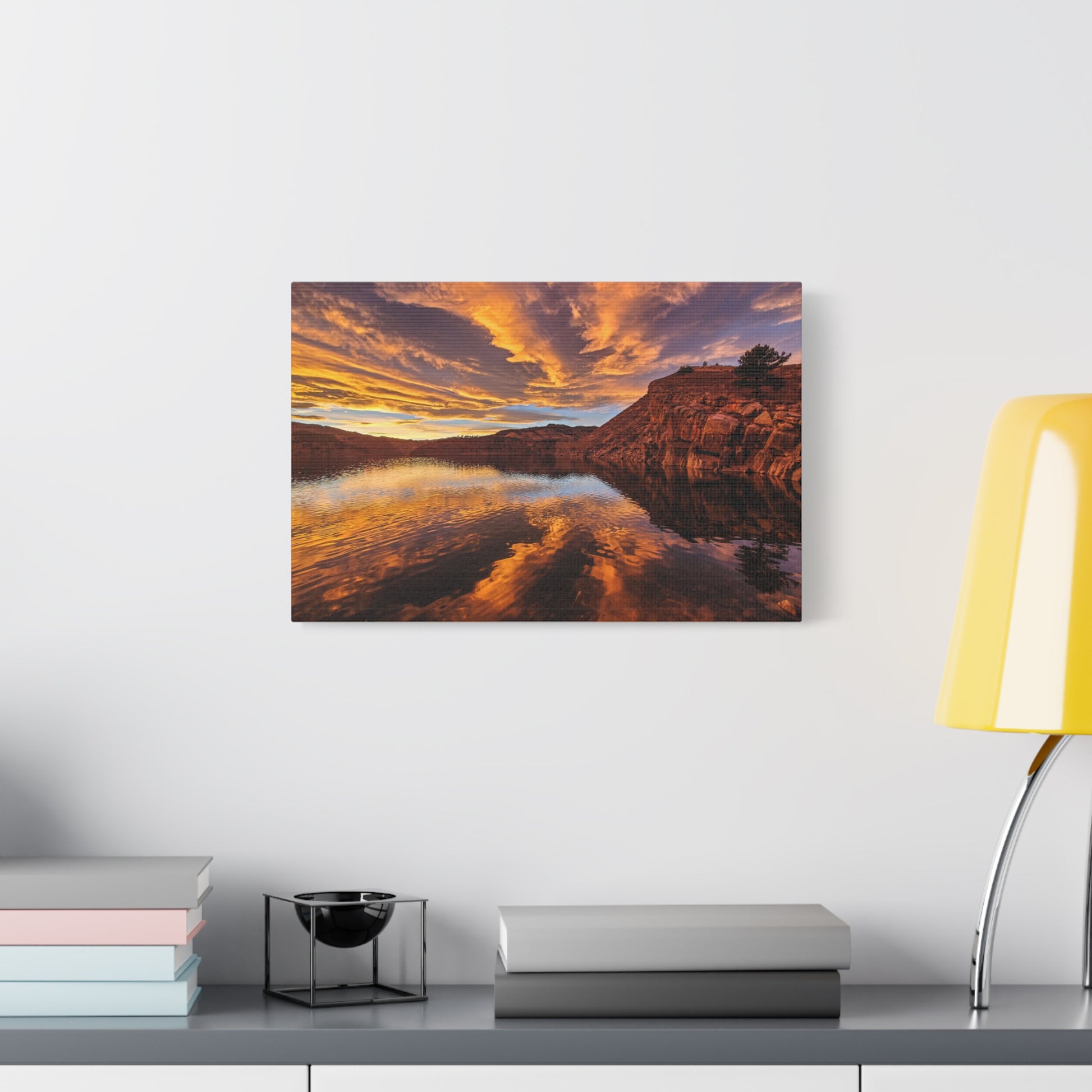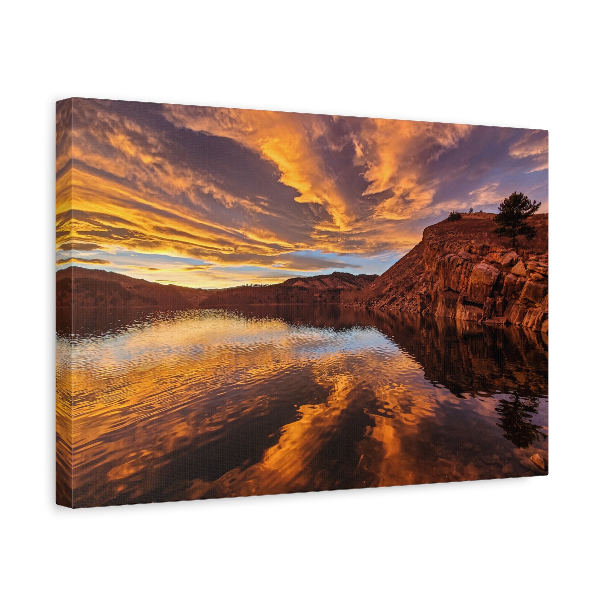 Wrapped Canvas Print - Colorful Sunset Reflection at Horsetooth Reservoir