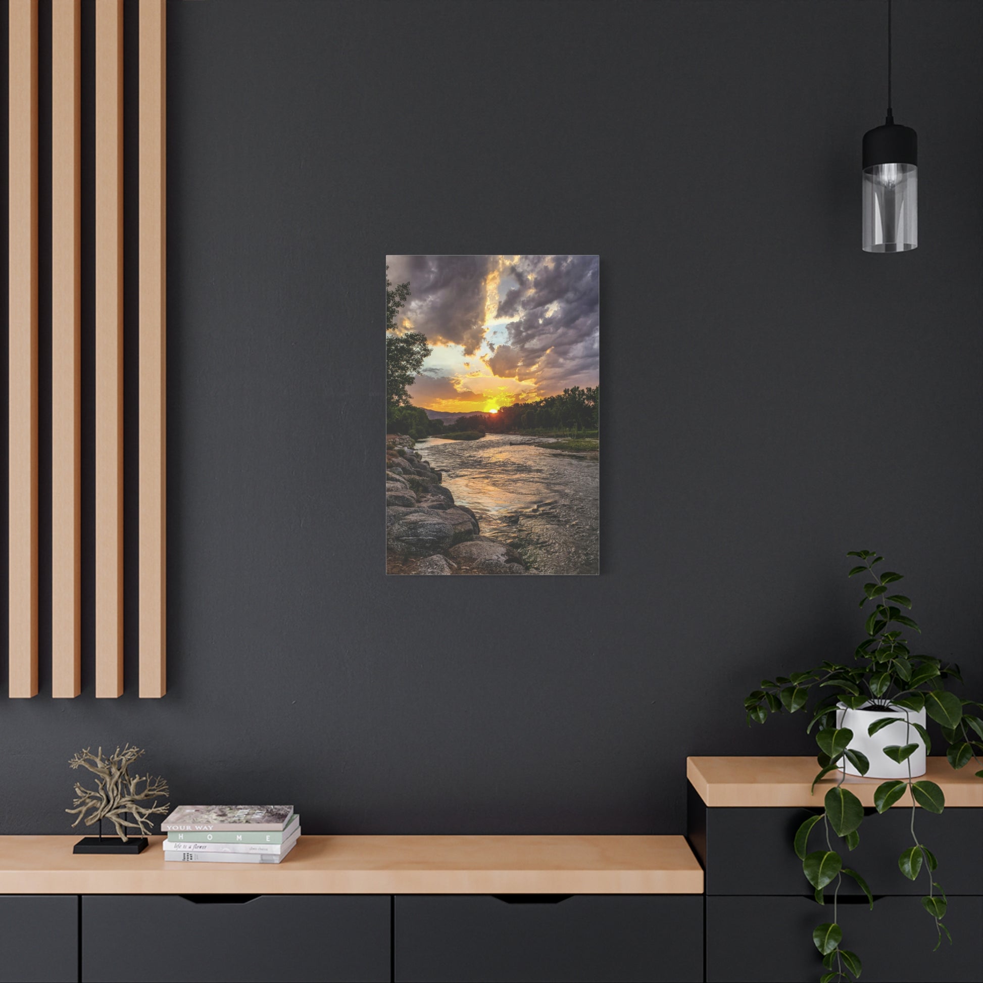 Capture the serene beauty of a sunset stroll along the Arkansas River in Canon City, Colorado with this matte canvas print. Perfect for nature lovers and those who appreciate scenic landscapes, this canvas is a sustainable and high-quality addition to any home decor. Ideal for individuals looking to bring a sense of tranquility and natural beauty into their living spaces. Great for gifts on occasions like birthdays, housewarmings, and holidays.